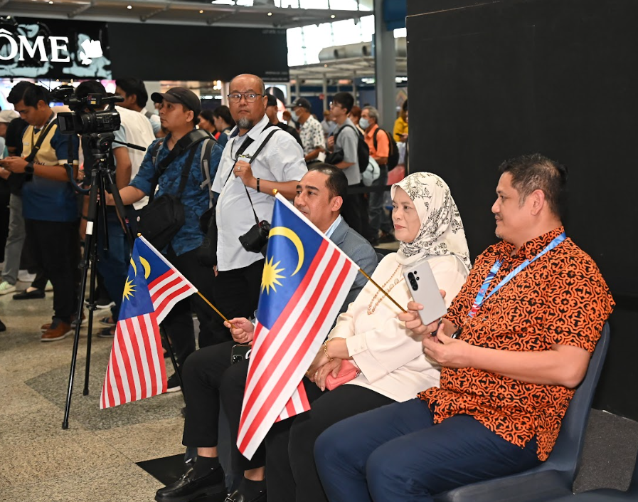 Turut hadir, YBrs. Puan Julina binti Johan, Ketua Pengarah Jabatan Penerangan Malaysia (JAPEN) dan YBrs. Encik Abd Hasman bin Abd Muhimim, Pengurus Besar Operasi KLIA 1.